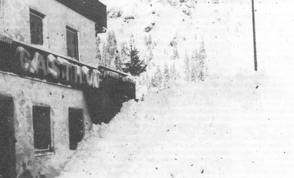 die Ahorntal-Lawine von 1984 kam kurz vor dem Gasthof 'Bergheimat' zum Stehen, drückte jedoch noch sämtliche Fenster ein