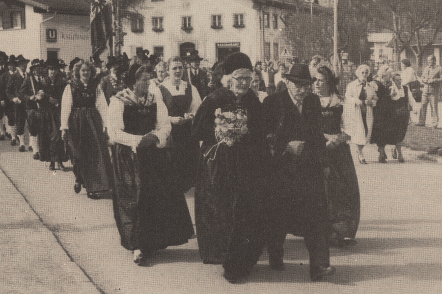 Die seltene Diamantene Hochzeit feierten am 1. Mai 1983 Rosa und Josef Perle in Bach, erstere auch als 'Trachtenmutter Rosa' weit über den Bezirk hinaus bekannt. Das ganze Dorf nahm an diesem Jubiläum herzlichen Anteil, Zeichen auch der großen Beliebtheit des Jubelpaares (Foto: Gert Ostwaldt)