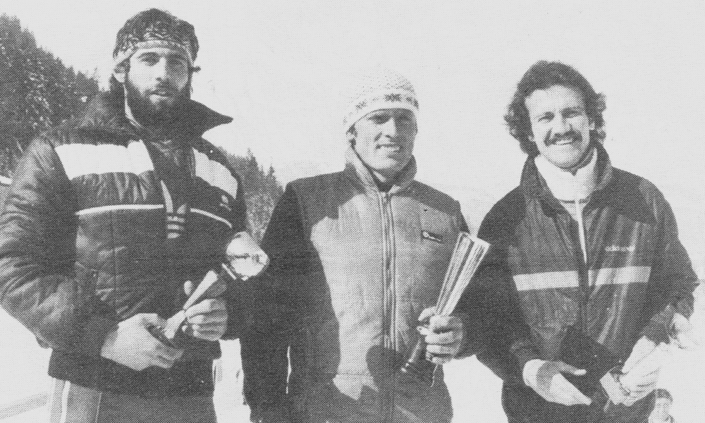 die Erstplatzierten beim Bezirkslanglauf-Cuprennen in Schattwald - Reinhold Hörbst, Hubert Feineler, Wilfried Siegele (Foto: W. Gehring; 1983)