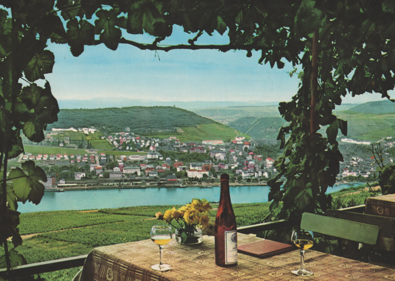 Rüdesheim am Rhein mit Blick auf Bingen; Verlag Krüger (vmtl. 1960er)