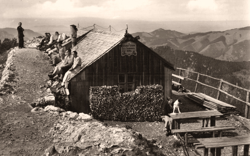 die noch recht schlicht gehaltene Ostlerhütte - Verlag 'Faldro' Falkenstein-Drogerie - ca. 1940er Jahre