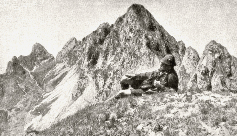Gimpel, Köllespitze und Kölleschrofen von der Schneidspitze aus gesehen - Foto: I. v. Weech (1926)