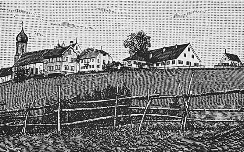 der Ort Hohenpeißenberg mit der Wallfahrtskirche Mariä Himmelfahrt - Roggenhofer Georg (1896)