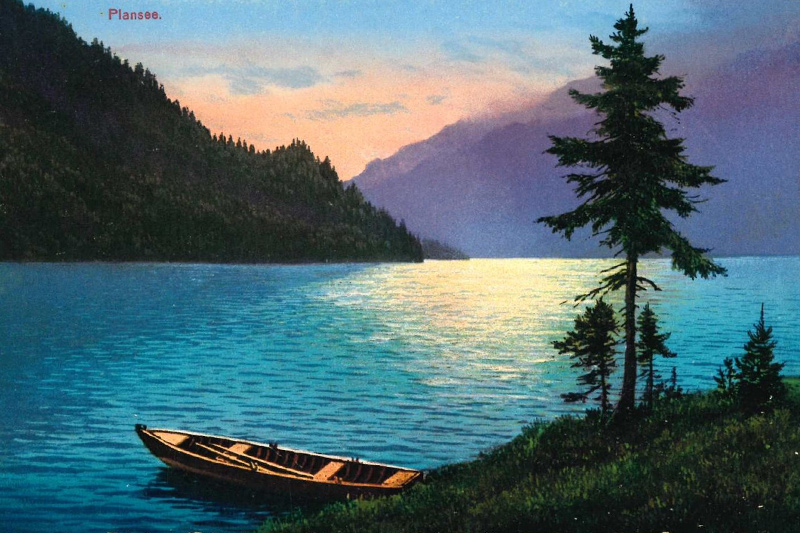 Schlüsselwörter: boot, kahn, plansee, abendstimmung, reutte