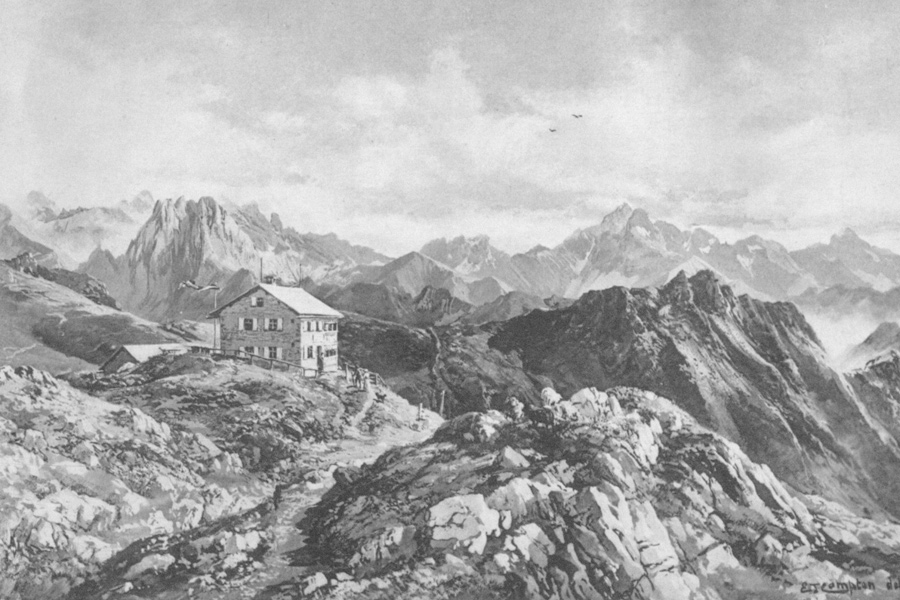 das Nebelhorn-Haus der D.Ö.A.V. Sektion Allgäu-Immenstadt - Edward T. Compton (1894) - erst 1918 wird es nach dem ehemaligen Sektionsvorstand Edmund Probst umbenannt