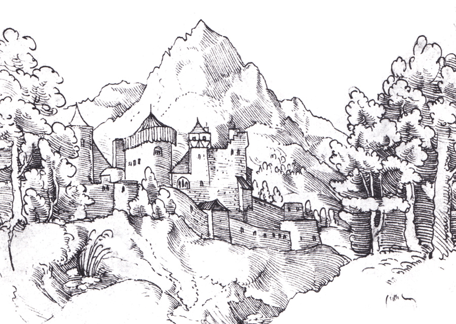 die Ehrenberger Grenzfestung bei Reutte - Bildautor: unbekannt - um 1540