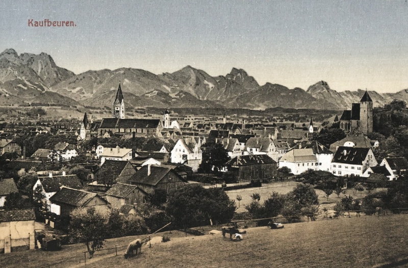 Blick auf Kaufbeuren und die südlich aufragenden Tiroler Berge - Foto: Ottmar Zieher (ca. 1910er Jahre)