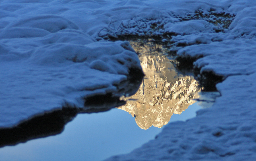 Spiegelung in einem Tümpel auf den Koppen