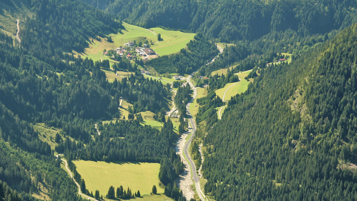 von Gaicht nach Nesselwängle In Gaicht - zu Weißenbach gehörend aber geografisch schon im Tannheimer Tal gelegen - wird an einer Tafel auf das "Älteste Haus des Tannheimer Tals" und einen Salzstadel aus dem 12. Jahrhundert hingewiesen. Jedoch sind beide Behauptungen nicht historisch belegt und erscheinen übertrieben. Der weitere Verlauf der Strecke zwischen Gaicht und Nesselwängle ist eher unklar. Es erscheint auf den ersten Blick eher unwahrscheinlich, dass der Straßenzug ursprünglich wieder in die Talniederung zu der Stegmühle hinab geleitet wurde um dann entlang der Strecke zweimal den Warpsbach zu überqueren ehe man in Nesselwängle ankam. Eine Trasse östlich des Baches, dem heutigen Forst- und Radweg folgend über das sogenannte 'Ebele' erscheint plausibler - was letztlich auch durch die archäologisch nachgewiesene alte Straßentrasse etwa 100 Meter nordöstlich der heutigen Einfahrt Nesselwängle/Ost untermauert wird. Dieser Altweg trifft rund 200 Meter vor Ortseingang auf den Verlauf der alten Bundesstraße.Allgäu