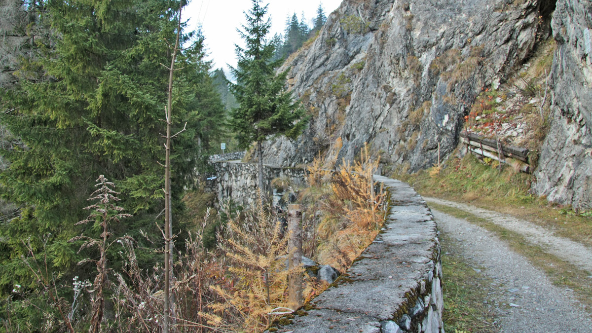 "...das war ein Saumweg, rauh, steinig, steil und mit dem Aufstieg von Reutte über die 1660 m hohe Schneetalalpe hinab nach Nesselwängle. Denn der tiefe, unwegsame Gachtpaß wurde wegen seiner Gefährlichkeit gemieden..."
