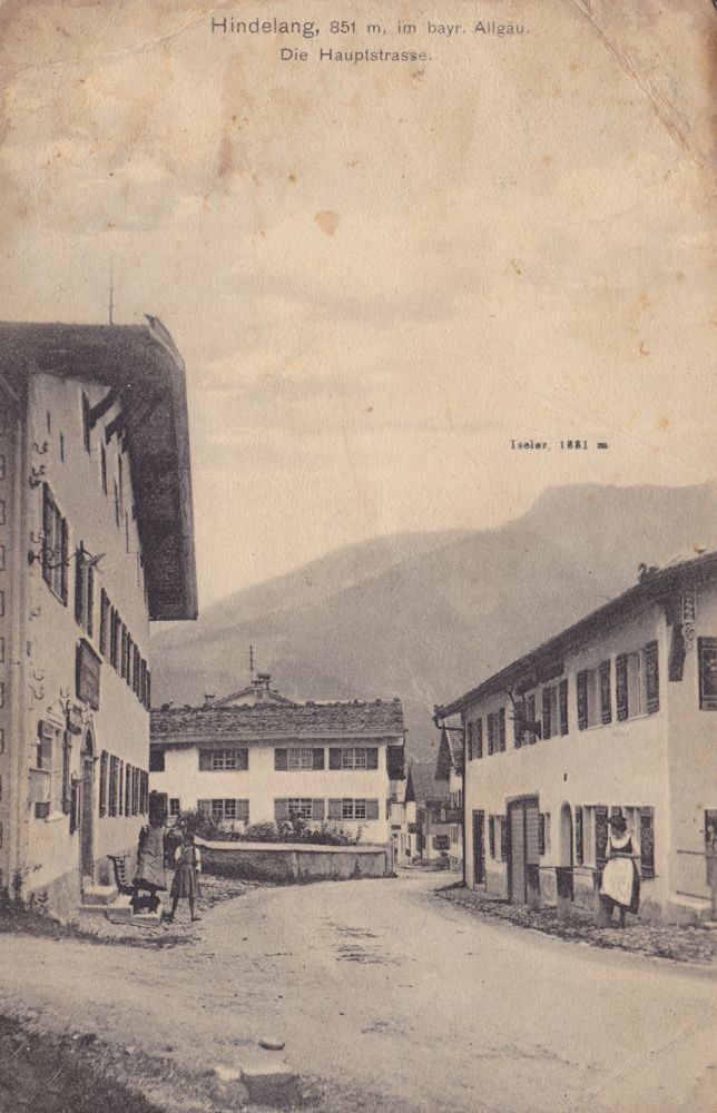 vom Oberjoch den Jochpass hinab nach Hindelang Nachdem das Oberjoch erreicht war, ging es anderseits über den Jochpass steil hinab. Genauso wie das bergauf fahren, hatte auch das Fahren bergab seine Tücken. Speziell die schweren Salzwagen bargen ein hohes Risiko, an der steilen Abfahrtsstrecke außer Kontrolle zu geraten. Oft wurden deshalb schwere Frachtgegenstände in Oberjoch zurückgelassen, weshalb zu Beginn des 19. Jahrhunderts ein Salzstadel in dem Ort am oberen Ende der Passstraße errichtet wurde. Bald nachdem man das Dorf Oberjoch verlassen hat, gelangt man an die von den Rodleuten errichtete Kapelle 'Beim Bild' um vor der gefährlichen Abfahrt noch einmal Gottes Beistand zu erbitten. Das Gefälle steigert sich sodann nochmals und über eine kurvenreiche Strecke erreicht man die sogenannte Wacht - diese Zollstelle wurde von den Herren von Montfort an der Grenze zu ihrem Herrschaftsgebiet errichtet. Weiter unterhalb der Wacht legt sich das Gelände wieder etwas zurück. Vermutlich hatte es im mittleren Bereich der Passstraße einige Ausweichtrassen gegeben um nötigenfalls dem Gegenverkehr ausweichen zu können. Verschiedene wie Hohlwege anmutende Gräben lassen dies zumindest vermuten. Auch wenig oberhalb von Hindelang scheint es noch einmal mindestens zwei Fahrbahnen gegeben zu haben, was jedoch aufgrund der Überbauung nicht mehr zweifelsfrei zu sagen ist. Mit Hindelang im Ostrachtal ist auch die nächste Rodstation erreicht. Für die Abwicklung war wie in anderen Rodstationsorten der Salzfaktor zuständig. Der hatte seinen Sitz im sogenannten Dreikugelhaus, welches im Franzosenkrieg vom Jochberg aus von den Österreichern beschossen und eben mit jenen drei Kugeln getroffen wurde.Infotafel beim Grenzstein 'Äußeres Drittel'