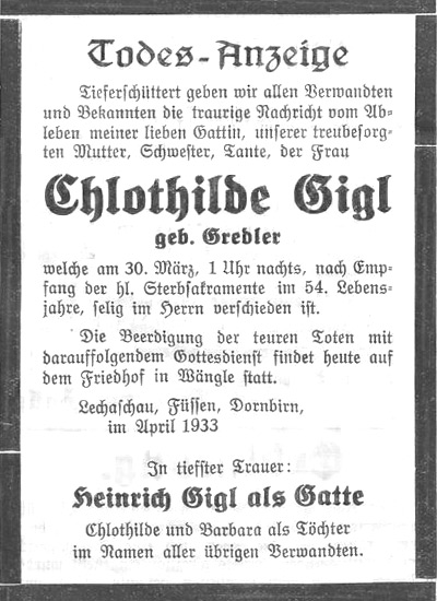 Sterbebilder Gigl Chlothilde Ort: Lechaschau Gedenkjahr: 1933 geb. Gredler Kommentare Noch keine Kommentare vorhanden. Schreiben Sie den ersten! Einen Kommentar hinterlassen Ihr Name: Ihre Nachricht: Jetzt abschicken → Zurück zur Übersicht