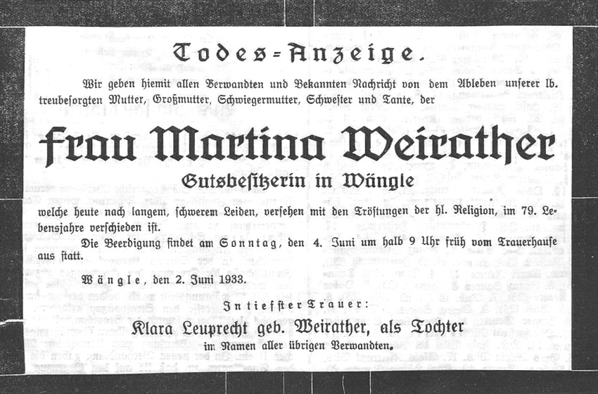 Sterbebilder Weirather Martina Ort: Wängle Gedenkjahr: 1933 Kommentare Noch keine Kommentare vorhanden. Schreiben Sie den ersten! Einen Kommentar hinterlassen Ihr Name: Ihre Nachricht: Jetzt abschicken → Zurück zur Übersicht