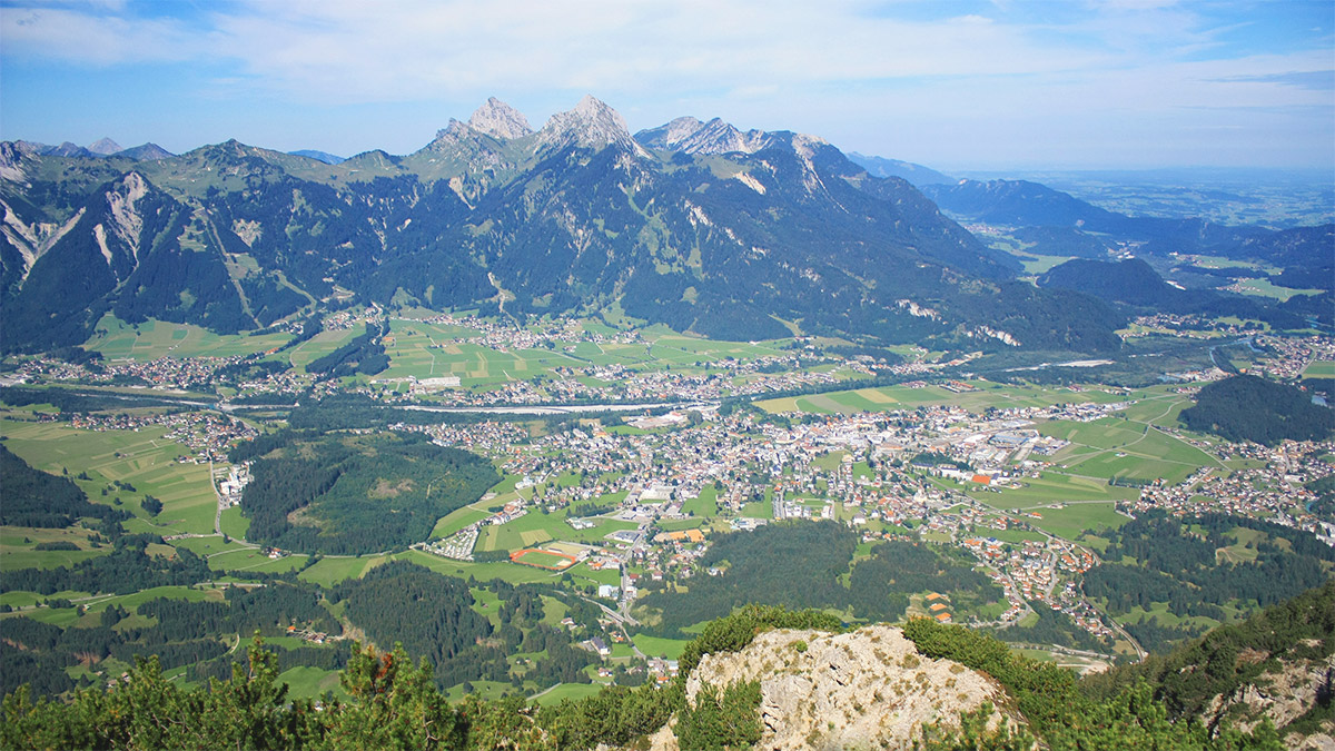 ...es findet sich nicht überall das prächtige Zusammenspiel von Bergen wie der Säuling, dessen schroffe Kuppen hoch aus dem Fichtenwald ragen, der Tauern beholzt bis zur Höhe, der Tarneller mit vollgeschneiten Rissen gestriemt bis zur Hälfte herab, wie die nahen Aschauer Höhen, reich an Alpen und in vielen Spitzen emporbrechend, und in der Ferne der mächtige Stock weißer Lechthaler Hörner...