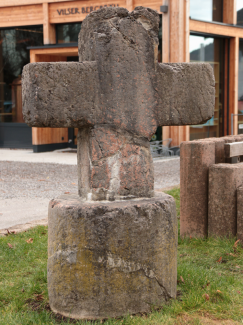 Eine Sonderstellung nimmt Vils in mehrerlei Hinsicht ein - zumal bis 2024 auch die einzige Stadt des Außerferns. Der ursprüngliche Kern lag östlich der heutigen Ruine Vilsegg und südlich der Vilser Scharte - dem niederen Übergang zum Alatsee - und gehörten diese ersten Höfe dem Kloster St. Mang in Füssen an. Noch heute wird für diesen alten Siedlungsbereich der Flurname 'das Dorf' verwendet und bis in die erste Hälfte des 20. Jahrhunderts war offenbar noch ein 'leidlich erhaltener Ziehbrunnen' an der Stelle anzutreffen [1]. Durch die häufigen Überschwemmungen verlor dieser aber bald an Bedeutung und zogen die Bewohner an den geschützteren Ort auf der gegenüberliegenden Talseite - an den alten Verlauf der Straße nach Kempten.Auszug aus einer Festschrift des Ignaz P. Dengel - 1927