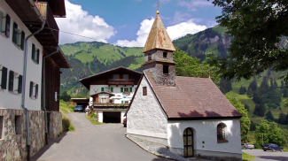 an der rechten Seitenwand war noch bis vor wenigen Jahren ein Fresko mit dem Gründer des Ortes Haller zu sehen