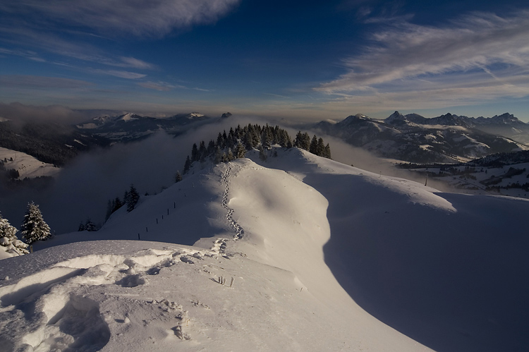 Zweitplatzierte Aufnahme aus dem Fotowettbewerb auf alpic.net unter dem Motto 'Spuren im Schnee' von Allgaier