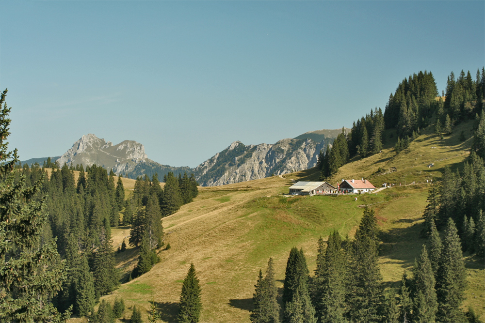 Nesselwängler Ödenalpe; im Hintergrund der Aggenstein und Lumberger Grat