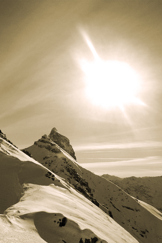 die Alplespleisspitze zeigt sich unnahbar aus dem Guflejoch