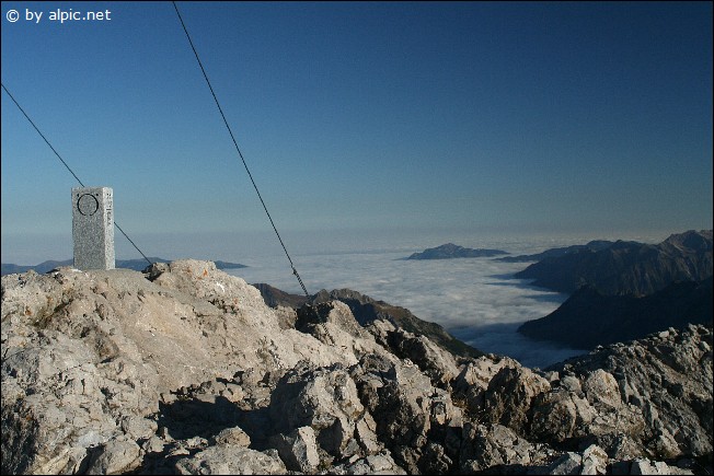 Nach der prächtigen Gipfelschau folgt der Abstieg, zurück hinunter durch die Gipfelrinne, bis hin zu vorgenanntem Wegweiser. [weiter in Richtung