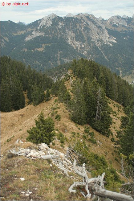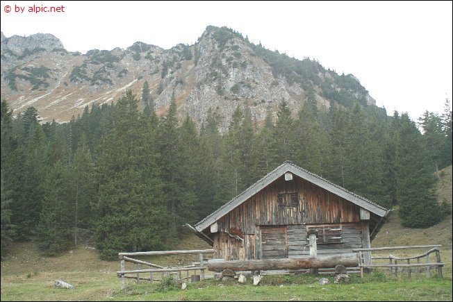 Rasch gelangt man an eine Schotterrinne, ab dieser dann nicht mehr weiter absteigen, sondern waagrecht die Höhe beibehalten um die Latschengasse zu treffen. Durch die Gasse dann in eine bewaldete Einsattelung und jenseits der Geländekante in die unten anschließende Weidefläche hinunter. Hier trifft man nun auch wieder auf den von der Einsteinhütte heraufleitenden Steig. Diesem folge ich bis hinunter zur Hütte und weiter durch einen Mischwald, bis dieser auf den aus der Enge heraufleitenden Forstweg trifft. Auf diesem zunächst hinab und die nächste Abkürzung über einen Steig nützend hinunter zum Parkplatz an der alten Grenzstation.