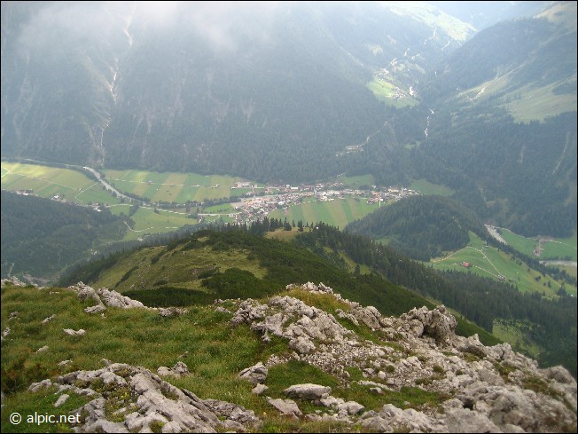 Also nach links durch Latschengassen weiter und über einen freien Rücken kurzzeitig etwas steiler und danach wieder flacher, bis sich dieser immer mehr verengt und schließlich über einen schrofigen, aber kurzen Grat führt. Über Schutt und grobes Blockwerk immer den Markierungen folgend, geht es über den Gipfelaufbau zum schon sichtbaren Kreuz hinauf. Das Kreuz selbst steht nicht auf dem höchsten Punkt, sondern ist wegen der besseren Sichtbarkeit aus dem Tal auf etwas vorgeschobener Position platziert.