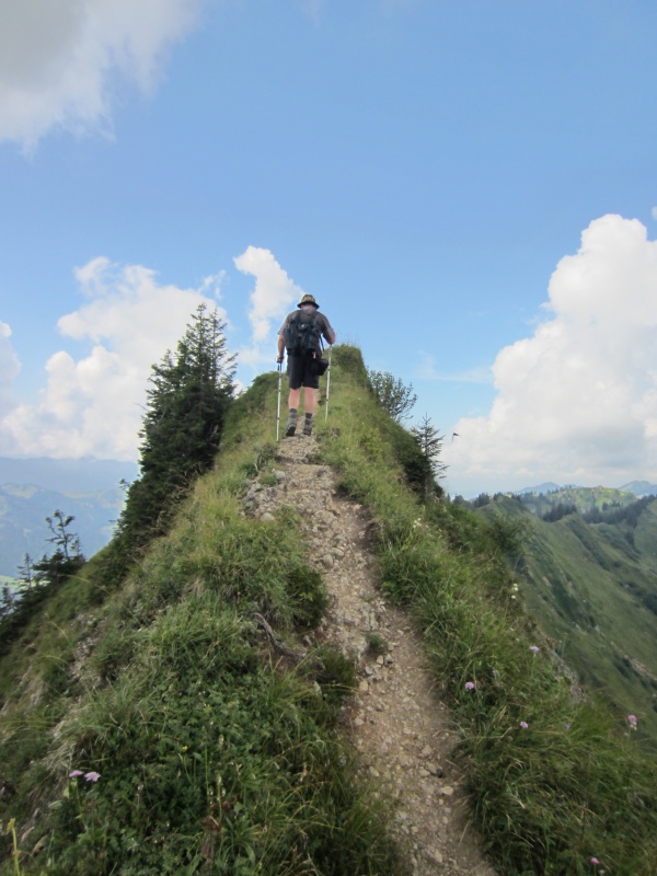 Unsere weitere Route soll uns zum Heidekopf führen und so steigen wir über schmale Grate und meist seilgesicherte Nagelfluhbänder hinüber zum Gratkopf und weiter zum