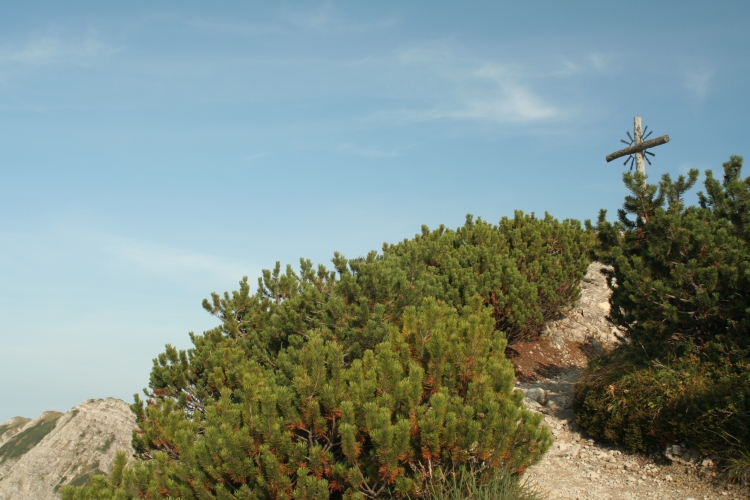 Nach wenigen Minuten erreicht man die Bergstation der Iseler-Bergbahn und hält sich den Wegweisern folgend zunächst in westlicher Richtung zur Iseler-Platz-Hütte, von wo aus ein Steig in langen Serpentinen durch Latschengassen am Nordwesthang des Gipfelrückens hinaufzieht und bald den Grat erreicht. Eine herrliche Aussicht auf die südlichen Allgäuer Alpen, ins Ostrachtal und hinunter nach Hindelang tut sich auf. Nach links führt der Steig in wenigen Minuten zum bereits sichtbaren Gipfelkreuz des Iseler-Ostgipfels (1811m).