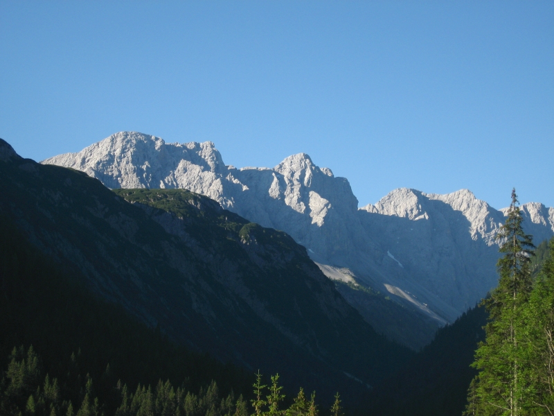 Mir gelang das einmal nicht und bin auch prompt in ein Latschenfeld geraten, durch welches ich mich dann durchkämpfen musste. Bald aber wieder am Steiglein angelangt geht es weiter und über einige Schotterreisen und um einen Kopf herum in den Kessel der kleinen, unbewirtschafteten