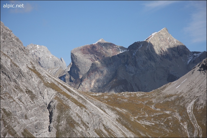 Zunächst steil hinunter in das Tal des Schnanner Baches bis zur Wegegabelung, an welcher auch der Steig vom zuvor besuchten Alperschonjoch eintrifft, verläuft noch alles problemlos. Doch dann stößt man auf erste Probleme. Der Weg ist abgebrochen und nur eine etwa handbreite Abfolge von Trittmöglichkeiten führt über den entstandenen Graben. Keine Latsche, kein Seil, das einem irgendwie weiterhelfen würde, versucht man an den Hang gelehnt einen Fuß vor den anderen zu setzen und die unangenehme Stelle zu passieren, immer wieder mal die etwa 30 bis 40 Meter in das Bachbett unter sich blickend. Wenn man aber meint es dann überstanden zu haben, liegt man wieder fehl.