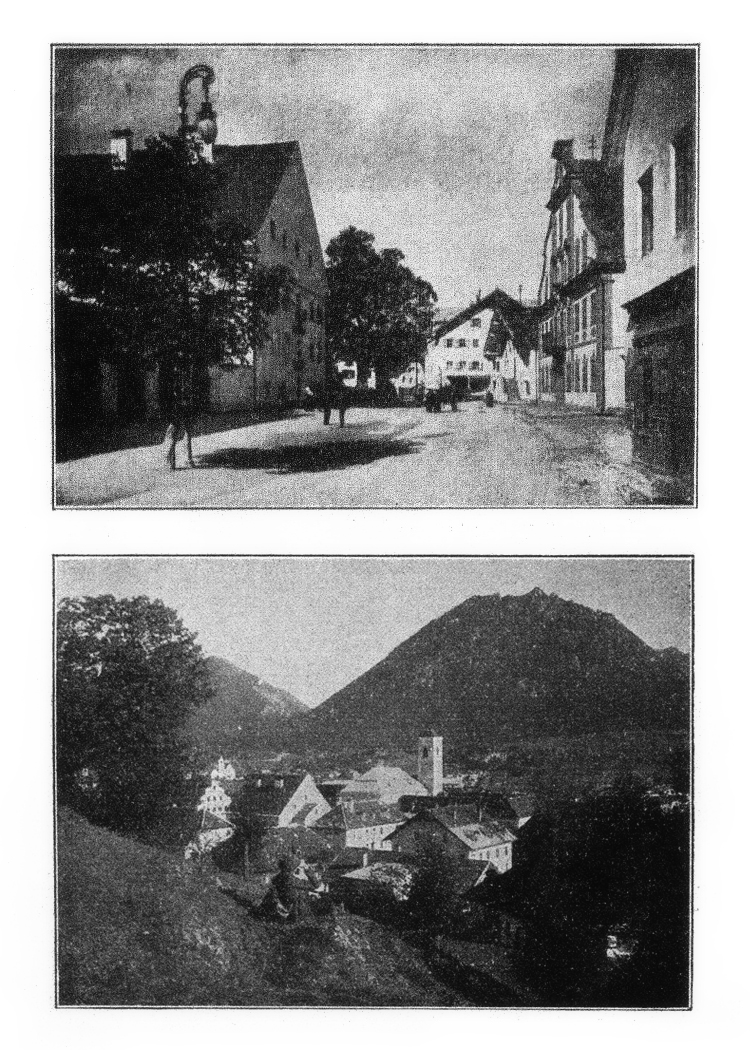 Reutte Ortszentrum und der Blick vom Wolfsberg (1912)