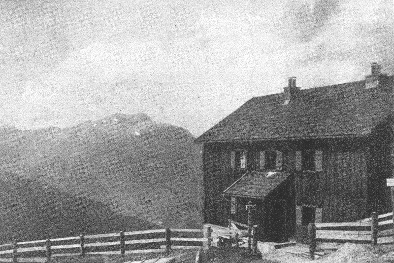 das Naturfreundehaus der Ortsgruppe München auf dem Marienberg - Blick zu Upsspitze und Daniel - 1926