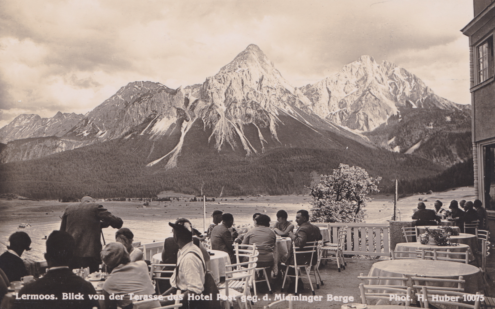 Ausblick von der Terrasse des Hotel Post gegen die Mieminger Berge - Foto: Hans Huber (1929)