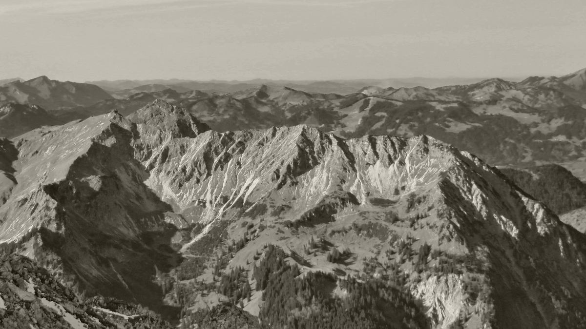 Blick in die Ostflanke des Breitenbergs mit dem Übergang über die Hohen Gänge (Klettersteig) zum Heubat- oder auch Gemsbollenkopf