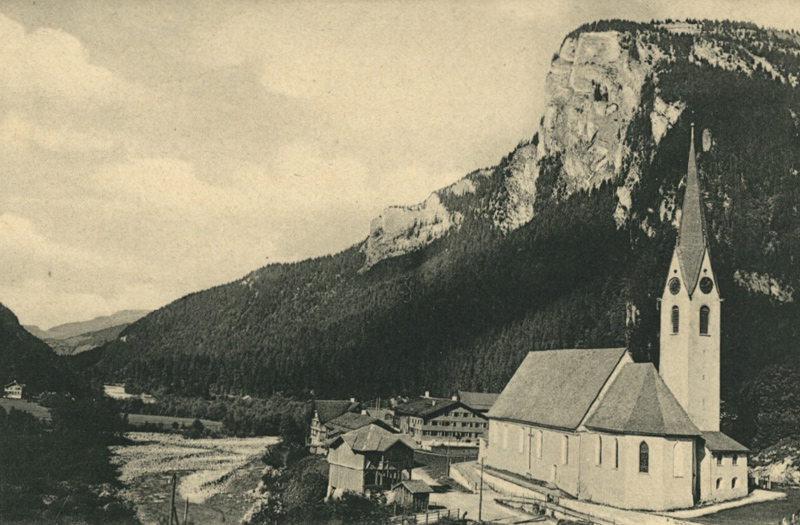 Gruss von Au m. Mittagsfluh i. Bregenzerwald - Foto: J. Heimhuber (etwa 1910)