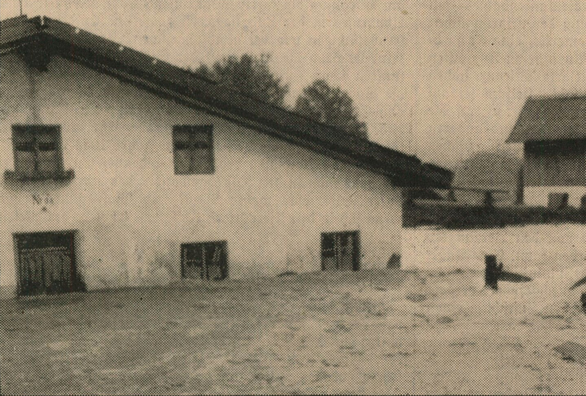 ein gefährdetes Haus in Ehrwald während des Hochwassers im August 1937 - Foto: Carl P. Wagner