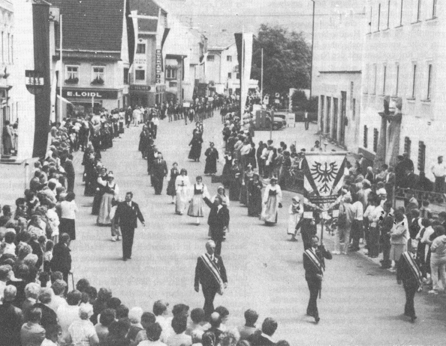 Festzug anläßlich des 90-Jahrjubiläums des Männergesangsvereins Reutte im Juni 1983 (AN; 25. Juni 1983; Foto Sonnweber)