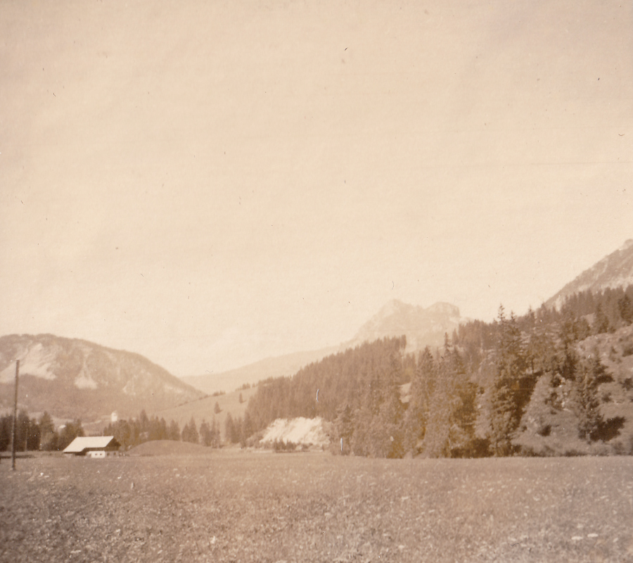 die Bebauung im Waldwinkel des Gräner Ortsteils Haldensee ist 1956 noch spärlich, neben dem einzeln stehenden Haus ist der legendäre Lausbichl zu sehen