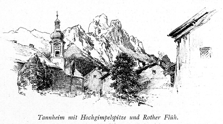 Tannheim und das Wahrzeichen des Tannheimer Tals - der Gimpel und die Rote Flüh - aus: Zeitschrift des deutschen und österreichischen Alpenvereins 1899