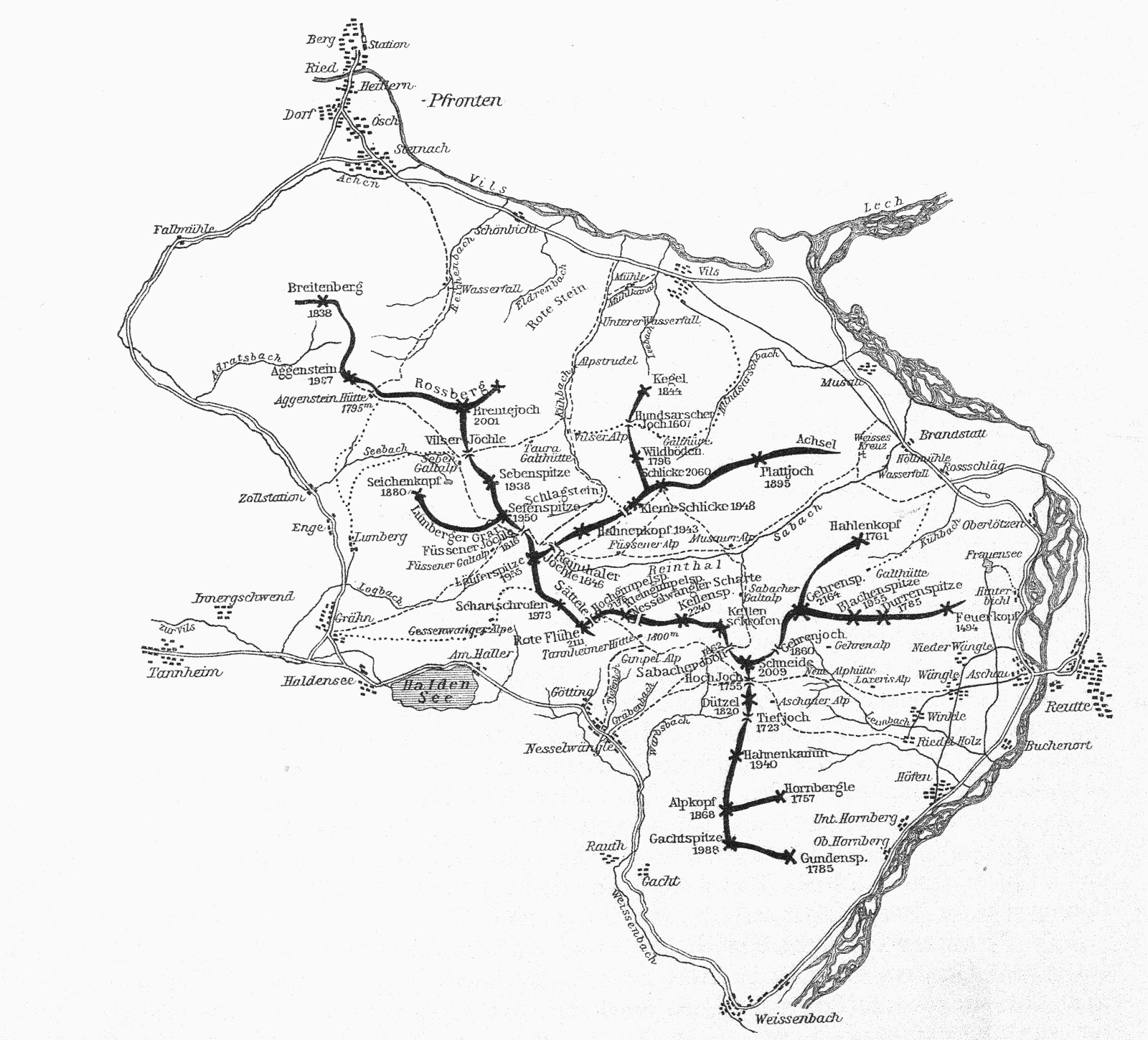 Skizze Tannheimer Berge von 1899