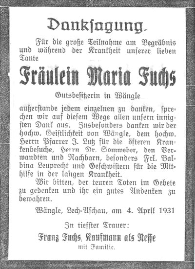 Fuchs Maria, Wängle