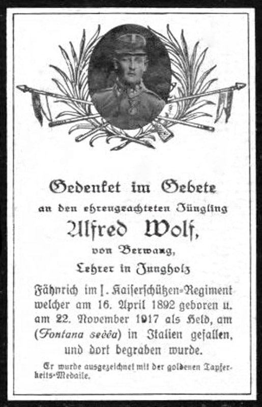 Start » Sterbebilder-Sammlung » Wolf Alfred aus Jungholz