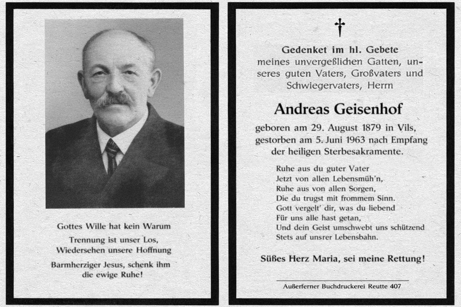 Start » Sterbebilder-Sammlung » Geisenhof Andreas aus Vils